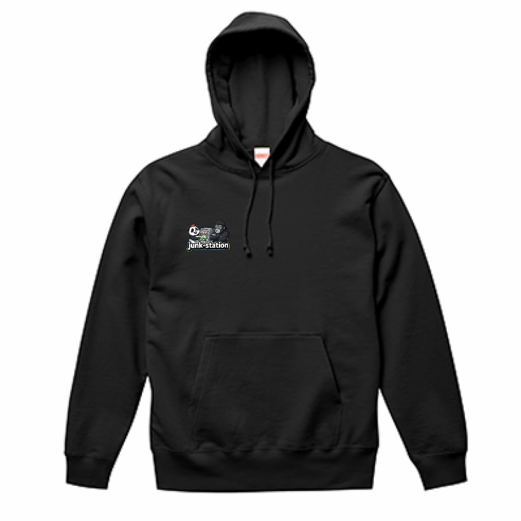 ジャンクステーションの新作パーカー、黒。シンプルなデザインながら、そのワンポイントが存在感を生み出し、どんなスタイルにもスムーズにマッチします。日常のお出かけやリラックスタイムに大活躍すること間違いなしです。